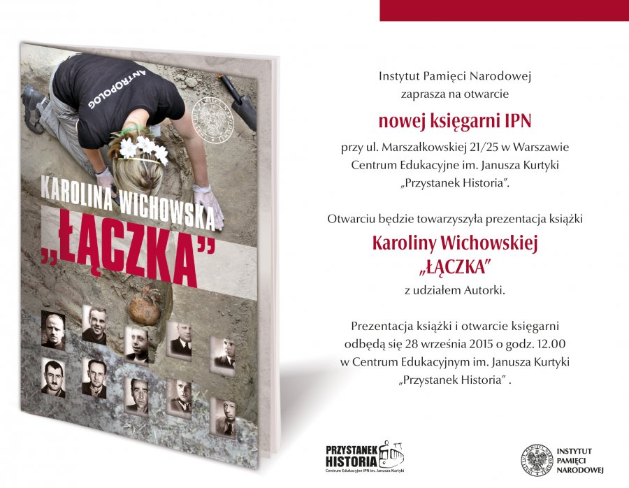 Serdecznie zapraszamy na otwarcie księgarni w poniedziałek 28 września o godz. 12:00. Uroczystości towarzyszyć będzie prezentacja książki Łączka autorstwa Karoliny Wichowskiej, dziennikarki "Pamięci.pl".