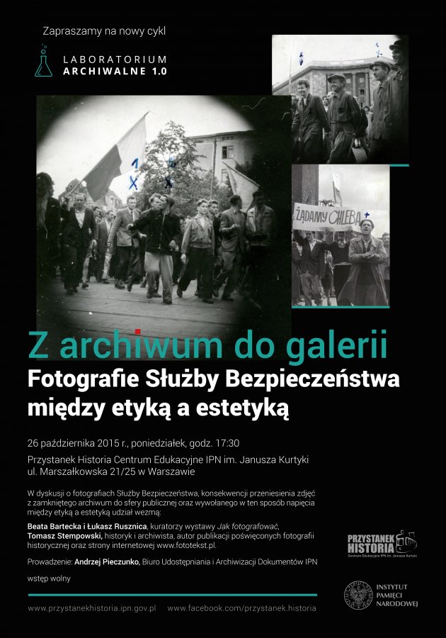 Pierwsze spotkanie – Z archiwum do galerii. Fotografie Służby Bezpieczeństwa między etyką a estetyką – poświęcone będzie konsekwencji przeniesienia zdjęć z zamkniętego archiwum do sfery publicznej oraz wywołanego w ten sposób napięcia między etyką a estetyką.