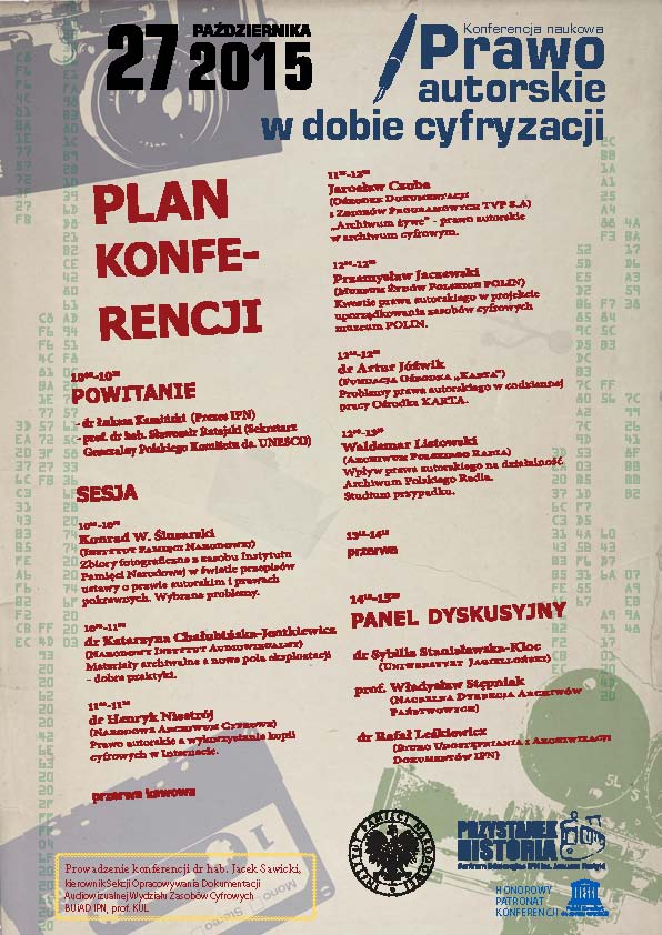 Konferencja naukowa Prawo autorskie w dobie cyfryzacji zorganizowana z okazji Światowego Dnia Dziedzictwa Audiowizualnego. Wymagana rejestracja.