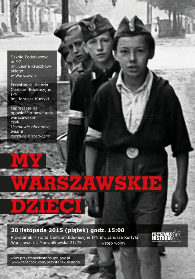 W ramach projektu Uczniowie obchodzą ważne rocznice historyczne uczniowie Szkoły Podstawowej nr 97 im. Leona Kruczkowskiego zaprezentują spektakl My warszawskie dzieci poświęcony Powstaniu Warszawskiemu.