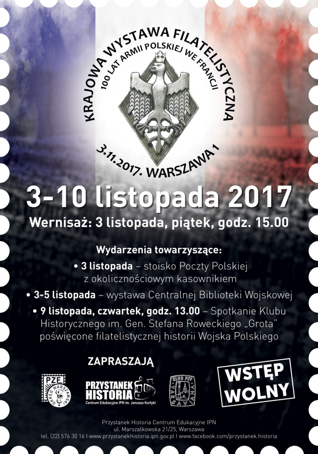 Sto lat temu, 4 czerwca 1917 r. Prezydent Republiki Francuskiej Raymond Poincare ogłosił dekret o powstaniu Armii Polskiej. Armia ta, której dowódcą został w 1918 r. gen. Józef Haller, była znana jako „Błękitna Armia” i wzmocniła w znaczący sposób Wojsko Polskie walczące o granice w latach 1919-1921. Wydarzenia te upamiętnia Krajowa Wystawa Filatelistyczna 100 lat Armii Polskiej we Francji przygotowana przez Okręg Warszawski Polskiego Związku Filatelistów oraz Klub Zainteresowań PZF Varsaviana. Wśród eksponatów znajdą się pamiątki związane z działalnością Armii Polskiej we Francji oraz innym epizodom walki o Niepodległą.