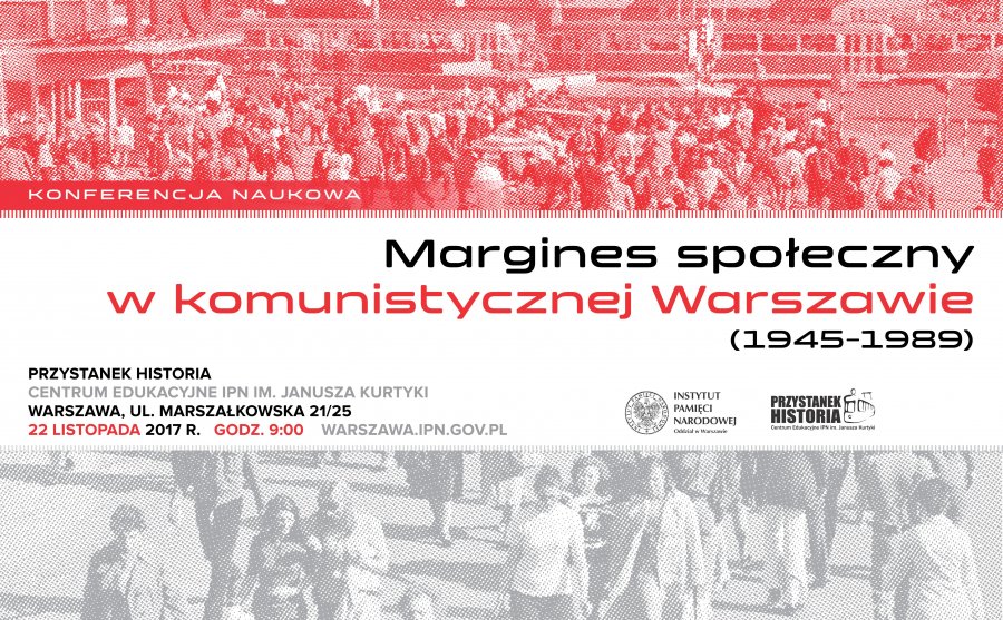 Konferencja naukowa Margines społeczny w komunistycznej Warszawie (1945–1989) zorganizowana przez Oddział IPN w Warszawie. Szczegółowy program obrad jest dostępny na stronie www.ipn.gov.pl.