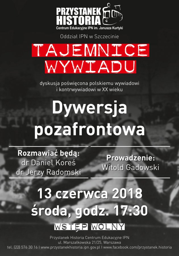 Dyskusja z cyklu Tajemnice wywiadu. O dywersji pozafrontowej dyskutować będą dr Jerzy Radomski i dr Daniel Koreś. Prowadzenie: Witold Gadowski.