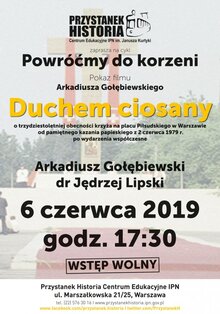 Spotkanie z cyklu Powróćmy do korzeni – pokaz filmu Arkadiusza Gołębiewskiego Duchem ciosany. Prowadzenie: Jędrzej Lipski.