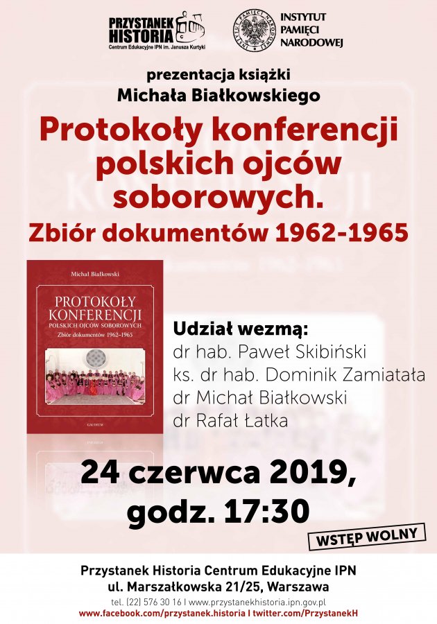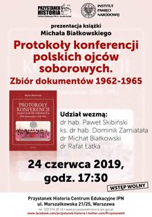 Prezentacja książki Michała Białkowskiego Protokoły konferencji polskich ojców soborowych. Zbiór dokumentów. W dyskusji udział wezmą: dr Michał Białkowski, dr hab. Paweł Skibiński, ks. dr hab. Dominik Zamiatała prof. UKSW oraz dr Rafał Łatka.