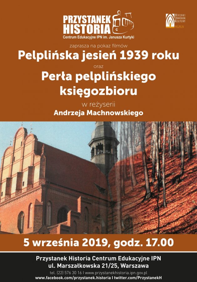 Pokaz filmów Andrzeja Machnowskiego: Pelplińska jesień 1939 roku oraz Perła pelplińskiego księgozbioru. Po projekcji odbędzie się spotkanie z reżyserem.