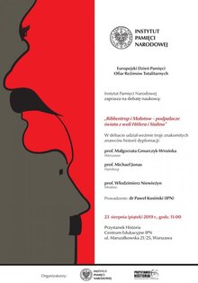 Data obchodzenia Europejskiego Dnia Pamięci Ofiar Reżimów Totalitarnych jest nieprzypadkowa – 23 sierpnia w 1939 r. ministrowie spraw zagranicznych III Rzeszy i ZSRS, Joachim von Ribbentrop i Wiaczesław Mołotow, podpisali w Moskwie układ, który przesądził o wybuchu wojny, co było równoznaczne z kolejnym rozbiorem ziem polskich. Najważniejszą częścią porozumienia dwóch totalitarnych państw był dodatkowy, tajny protokół uzgadniający podział Europy Środkowo-Wschodniej (w tym Polski) na niemiecką i sowiecką strefę wpływów. Ustalenia te stanowiły zapowiedź ludobójczej polityki realizowanej w imię zbrodniczych idei – nazistowskiej i komunistycznej.