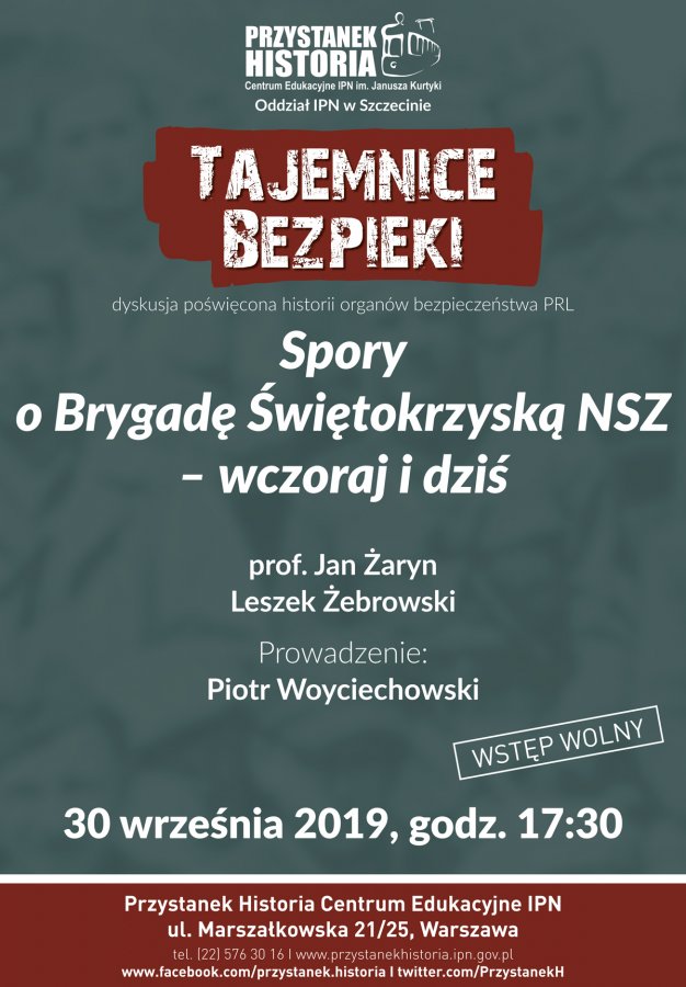 Tajemnice bezpieki - 30 września 30 września (poniedziałek), godz. 17.30 Spory o Brygadę Świętokrzyską NSZ – wczoraj i dziś – dyskusja z cyklu Tajemnice bezpieki. Gośćmi Piotra Woyciechowskiego będą prof. Jan Żaryn i Leszek Żebrowski.