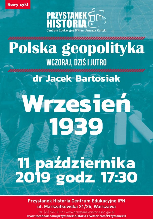 Polska geopolityka wczoraj, dziś i jutro - 11 października 11 października (piątek), godz. 17.30 Wrzesień 1939 – wykład dr. Jacka Bartosiaka z cyklu Polska geopolityka wczoraj, dziś i jutro.
