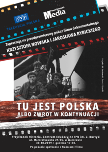 Przedpremierowy pokaz filmu dokumentalnego Tu jest Polska albo zwrot w kontynuacji w reżyserii Krzysztofa Nowaka i Jarosława Rybickiego. Film obrazuje proces zmian systemu ustrojowego i politycznego w Polsce, w drugiej połowie lat 80.