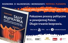 Dyskusja wokół najnowszej książki Patryka Pleskota Sądy bezprawia. Wokół pokazowych procesów politycznych organizowanych w Warszawie (1944-1989). O długim trwaniu bezprawia rozmawiali dr hab. Patryk Pleskot i Grzegorz Wołk.
