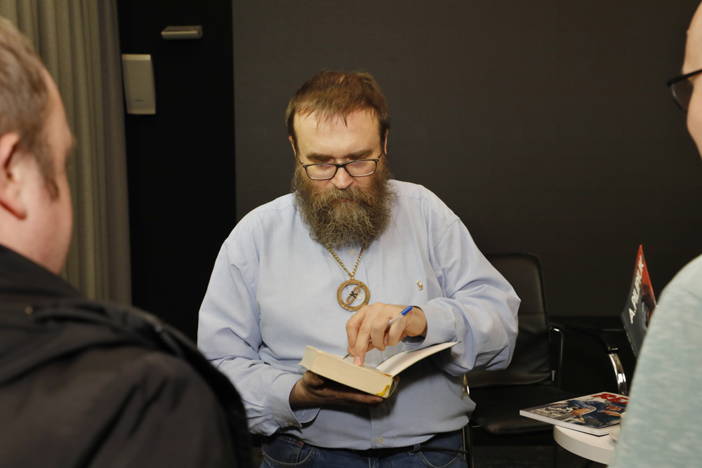 Gościem dr Adama Podlewskiego był Andrzej Pilipiuk – pisarz fantastyczny, archeolog, popularyzator wiedzy historycznej i konwentowy gawędziarz.